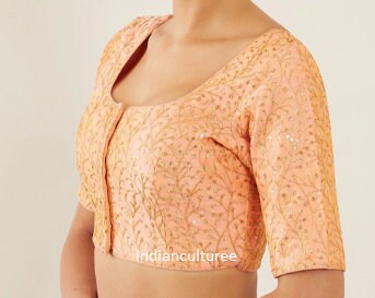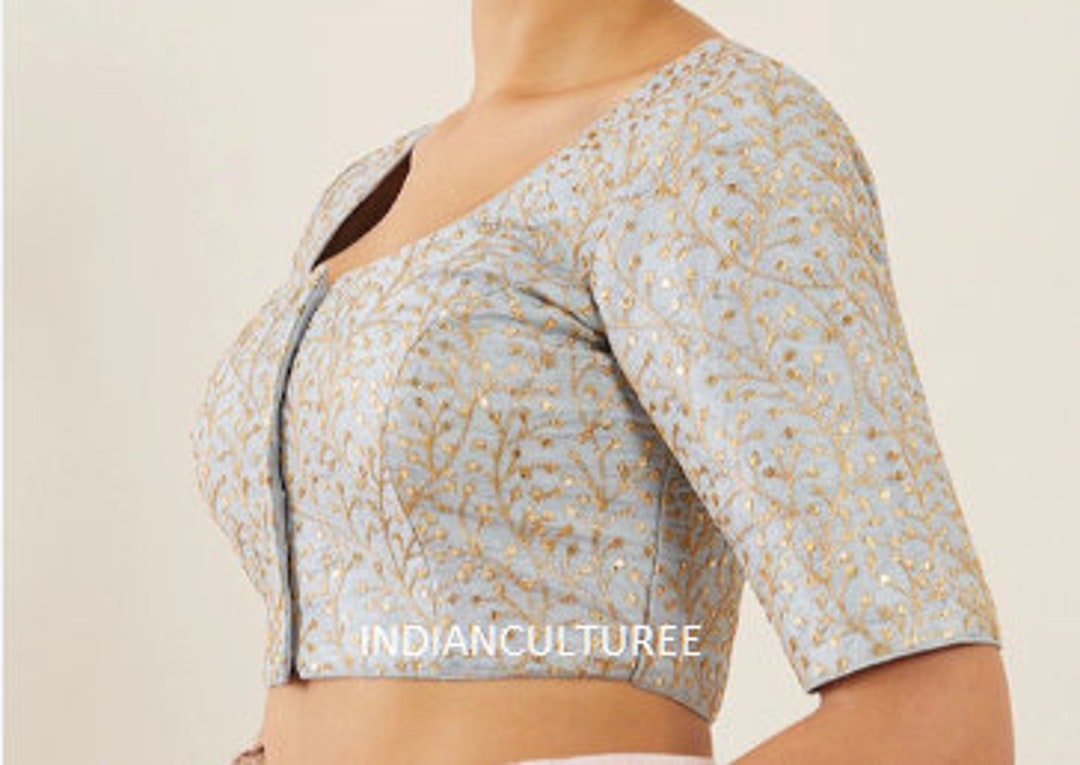 Handmade Round Neck Georgette Blouse With Elbow Sleeves Etsy
